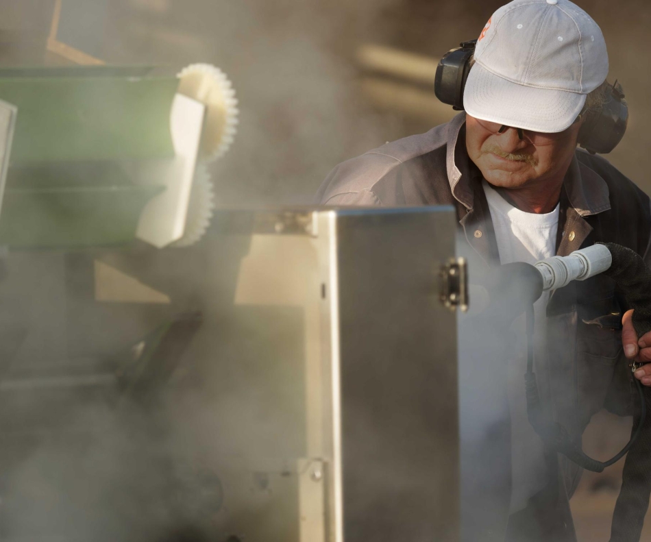 Die Reinigung mit Trockeneis ermöglicht es, selbst hartnäckige Verschmutzungen und Ablagerungen rückstandsfrei zu entfernen – ideal für Backstuben, Gastronomieküchen und andere Bereiche, in denen höchste Hygiene gefordert ist. Da sich das CO2-Strahlgut bei -78 °C verflüchtigt und direkt in den gasförmigen Zustand übergeht, entstehen keine Ablagerungen in schwer zugänglichen Stellen, wie es beim Sandstrahlen der Fall ist.